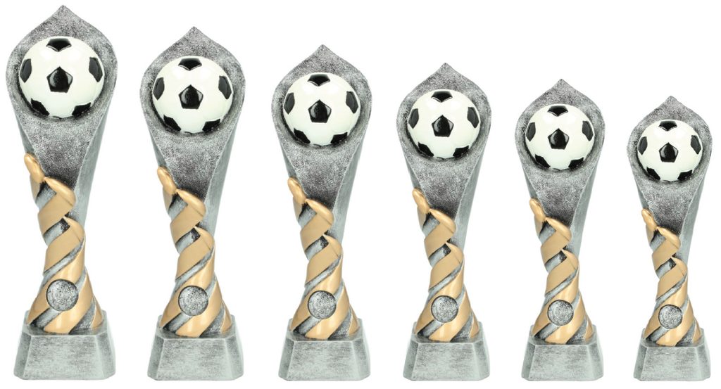 El Trofeo de Jugador de Fútbol está fabricado con resina de alta calidad en una combinación de colores de plata antigua y oro, y puede elegir entre 2 tamaños diferentes: 10" y 8".