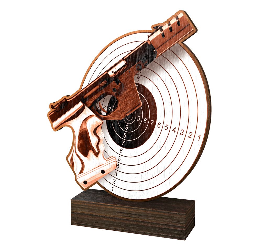Trofeo de Madera Real para Tiro con Pistola - Clásico
