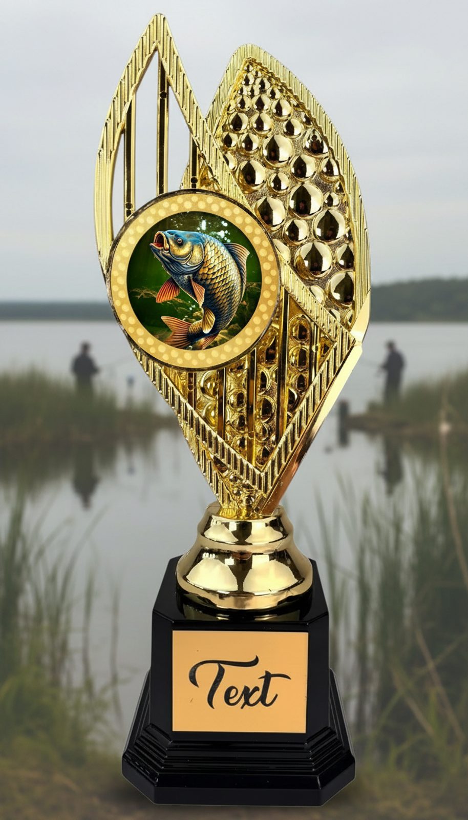 El trofeo está montado sobre una base de plástico negro resistente con una placa de aspecto metálico, donde añadimos tu texto personalizado. A pesar de su construcción ligera, ofrece un impacto visual impresionante — ideal para torneos, competiciones escolares, eventos corporativos y actividades infantiles.