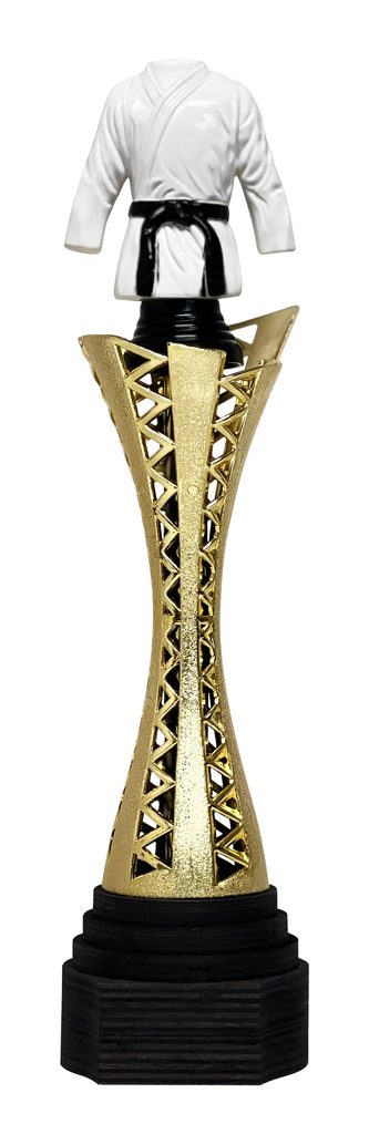 Está fabricado con una impresionante columna de plástico dorado montada sobre una base de madera de abedul. Estas piezas se complementan con una figura de plástico 3D atornillada en la parte superior. Elija entre 3 tamaños disponibles.