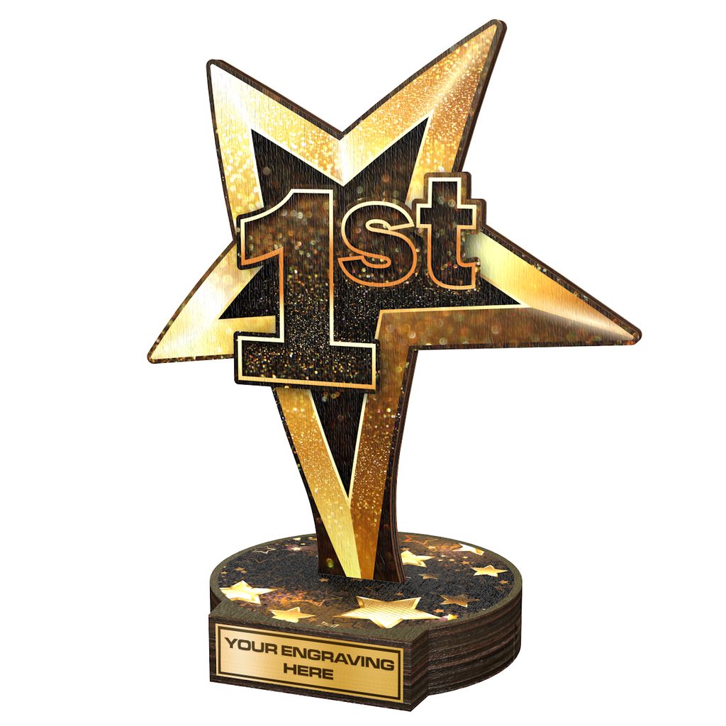 Trofeo Grove de Madera Real para 1er Lugar con Estrella Oro