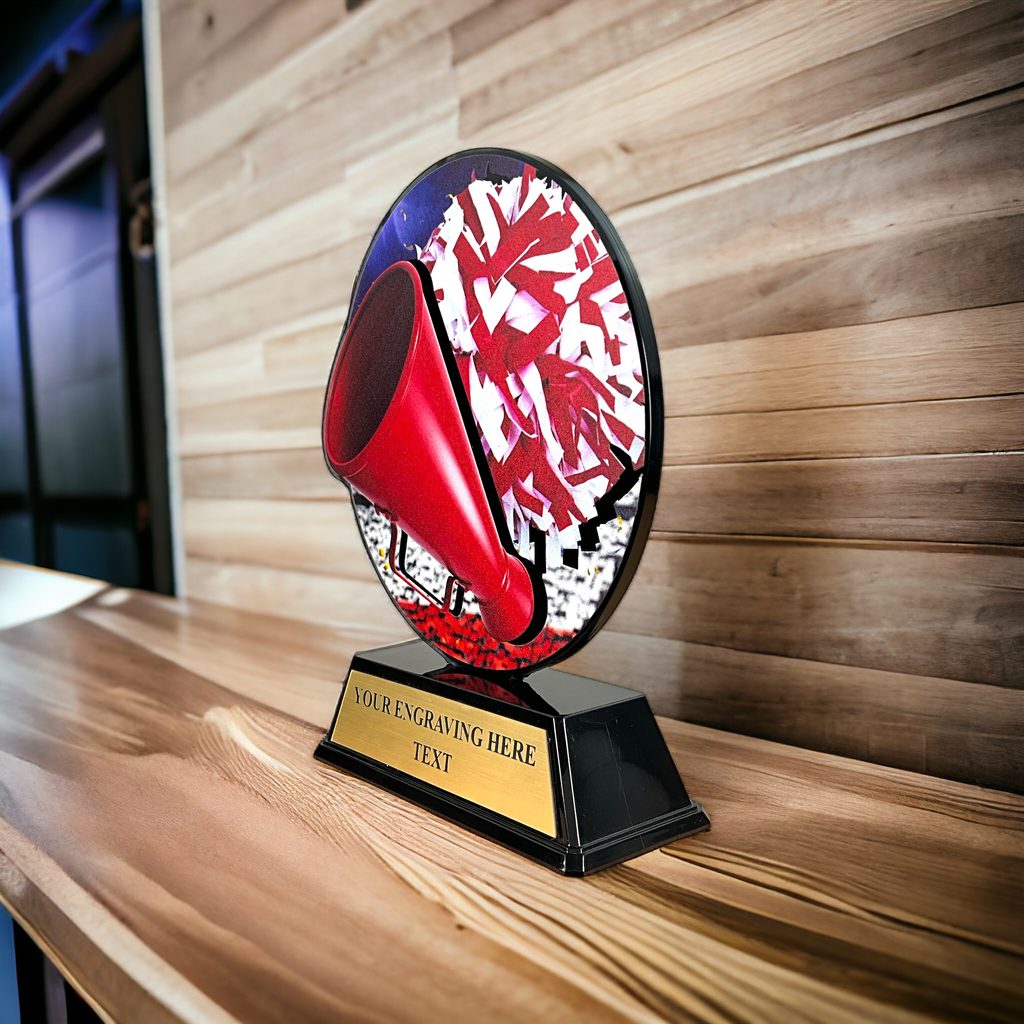 Trofeo de acrílico elaborado en acrílico negro brillante de alta calidad de 4 mm de grosor, con impresión a full color de primera categoría. Este es un trofeo dedicado e impreso completamente. Superior a copias que utilizan inserciones impresas. Disponible en cinco tamaños para adaptarse a todos los presupuestos.