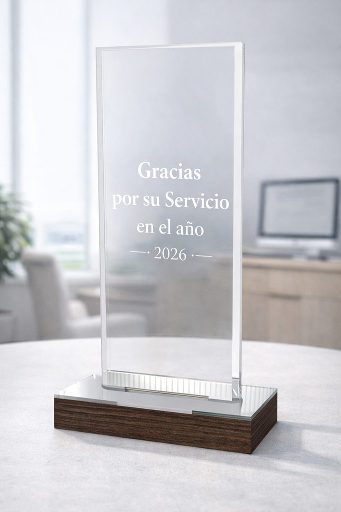 PERSONALIZACIÓN GRATUITA incluida con este artículo. Podemos imprimir el acrílico con texto y logotipo. También se incluye una placa de texto autoadhesiva grabada que se fija de manera elegante a la base. Compre con tranquilidad, ya que le enviaremos una prueba a color por correo electrónico para su aprobación antes de iniciar la producción.